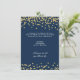 Desenho elegante de Recepção de Casamento (somente Recepção) com motivo Azul Marinho Confete de Brilho Falso Dourado, nomes e data personalizados. Impressione sua família e amigos com este design moderno e elegante.