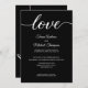 Motif preto e branco simples e elegante com um moderno roteiro de caligrafia "Love". Personalize este convite de recepção de casamento do elopemento com os nomes da noiva e do noivo todos os detalhes da festa sobre o elopemento e a recepção de casamento. Incluir um site de casamento. Este design de layout chic e elegante é fácil de personalizar.