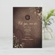 Abrace o charme dos anos passados com nosso convite de recepção de casamento em madeira rústica country vintage. Com um monograma delicado no topo de uma textura de madeira quente, entrelaçado com renda floral boho dourada, promete uma celebração encantadora de amor e herança.
