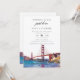 Este convite de recepção de casamento em aquarela para o Golden Gate Bridge de San Francisco, 'nada sofisticado, apenas amor', pode ser personalizado com suas informações em tipografia sofisticada. Criado por Thisisnotme©