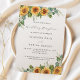 Anuncie sua alegria celebração com nossos convites elegantes para a recepção de casamento! Apresentando um fundo branco pristine adornado com girassóis vibrantes e delicados eucaliptos verde, estes convites captam a essência da beleza natural e do amor. Convide seus convidados para compartilhar seu dia especial com estilo e graça. Personalize e adicione seus nomes e detalhes da festa.