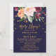 Este cartão de recepção de fuga para um casamento floral de outono é perfeito para uma festa pós-fuga no outono. O design apresenta um buquê deslumbrante de flores em tons de rosa, laranja pêssego e burgundy marsala com tipografia em folha de ouro falso e confetes. A parte traseira apresenta um arranjo de flores coordenado com tipografia de casamento linda. Cartões de RSVP são vendidos separadamente.