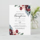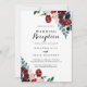 Este convite de recepção de casamento floral rosa borgonha marinho é perfeito para uma festa rústica pós-casamento secreto. O design apresenta peônias rosa, rosa claro, azul-marinho, azul e borgonha em aquarela, rosas com folhagens verdes organizadas de forma elegante em buquês.
