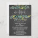 Este cartão de recepção de casamento furtivo com folhagem "nos fugimos" em quadro negro é perfeito para uma festa pós-casamento furtivo rústica. O design apresenta uma moldura de folhas verdes e botânicos de folhagem verde em um fundo de quadro negro cinza carvão. Cartões de RSVP correspondentes são vendidos separadamente.