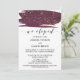 Este convite de recepção de casamento furtivo com marsala em aquarela e dourado é perfeito para uma festa de casamento furtivo elegante. Este design luxuoso apresenta um toque moderno de uma textura de aquarela marrom-burgundy sobreposta com um belo brilho dourado falso. Os cartões de RSVP são vendidos separadamente.