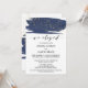 Este convite de recepção de casamento furtivo em aquarela azul marinho e dourado é perfeito para uma festa de casamento furtivo elegante. Este design abstrato de noite estrelada apresenta um pincel dramático de aquarela azul marinho sobreposto com belo brilho dourado falso. Os cartões de RSVP são vendidos separadamente.