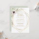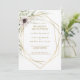 Este convite de recepção de casamento geométrico dourado de eucalipto é perfeito para o seu casamento boho elegante. É projetado com flores de anemona brancas e roxas boêmias simples, folhas de sage verde simplistas em aquarela e molduras de inverno modernas em folha dourada. Com a combinação de flores brancas e folhagens rústicas simples, você certamente criará a atmosfera dos seus sonhos.