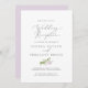Este convite de recepção de casamento lilás rústico é perfeito para uma festa pós-fuga romântica na primavera ou verão. O design floral romântico e elegante apresenta flores silvestres lilás roxas em aquarela com um toque de jardim country boêmio. Cartões de RSVP são vendidos separadamente, ou você pode adicionar informações de RSVP no verso do cartão.