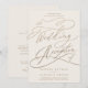Este convite de casamento em grafite dourada romântica em marfim é perfeito para uma simples festa pós-fuga. O design clássico moderno apresenta redemoinhos extravagantes e floreios caprichosos com tipografia elegante e falsa folha de ouro champanhe. Cartões de RSVP são vendidos separadamente, ou você pode adicionar informações de RSVP no verso do cartão.