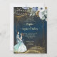 Download instantâneo do modelo de convite para recepção de casamento de brilhante marinho de ouro azul . Casal dançante, flores azuis empoeiradas, luzes de fadas.