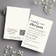 Mínimo moderno elopemento de creme leve ou anúncio privado de casamento e convite de recepção apresentando "Felizmente Nunca Depois da Festa" em uma mistura de um roteiro contemporâneo e uma ousada tipografia de tendências. Personalize seu anúncio de casamento e seu convite de recepção e adicione seus nomes em um script semelhante a assinatura. No verso, insira o endereço de URL do seu site de casamento para criar um código de QR para que seus convidados digitalizem para RSVP on-line e obtenham todos os detalhes.