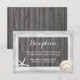 Cartões de Recepção de Casamento na Praia de Conchas com Moldura de Madeira Rústica.