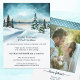 Um recepção de casamento romântica, convite pós-casamento ou após o casamento com uma pintura em aquarela de uma cena de inverno mágico. O verso mostra sua foto favorita (do casamento) com uma moldura branca azulada com bolinhas.