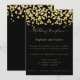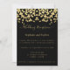 Convite de Recepção de Casamento com Confetes Dourados em Fundo Preto.