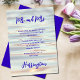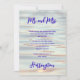 Anuncie um casamento em papel temático aquático, com Sr. e Sra. no topo e sobrenome na parte inferior. Personalize o modelo de texto central com palavras para uma festa de recepção para celebrar os recém-casados. Papel de água de lago ou mar calmo com texto roxo escuro.