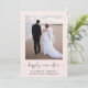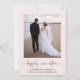 Elegante rosa claro ou anúncio privado de casamento e convite de recepção que mostra sua foto e "feliz para sempre" em um roteiro de chic com supressões. Ao contrário, personalize seu anúncio de casamento, adicione uma recepção ou convite de festas, insira seu endereço de site de casamento para criar um código QR para os convidados digitalizarem para RSVP on-line e assine seus nomes de casados em um roteiro semelhante a assinatura.