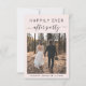 Ódio de rosa claro Chic ou pequeno anúncio de casamento e convite de recepção de casamento postada com sua foto e "Feliz eterno festa" em uma mistura de simples tipografia e um roteiro elegante com baloiços. No verso, adicione seus detalhes de anúncio e convite e seus nomes em um script semelhante a assinatura.