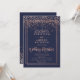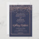 recepção de casamento rosa gold confetti marinho de tipografia azul com rosa dupla borda dourada.