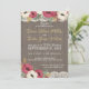 Convite de recepção de casamento rústico com flores burgundy, madeira de celeiro e renda para um churrasco 'Eu Aceito' ou uma recepção casual.