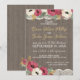 Convites Recepção de Casamento Rústico BBQ com Flores Burgu