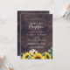 Este convite de recepção de casamento rústico com girassóis e madeira de eucalipto é perfeito para uma festa country após um casamento íntimo. O design floral boêmio apresenta girassóis amarelos, flores rosa bege e folhagens de eucalipto verde caçador em aquarela com um toque moderno e elegante. Os cartões de RSVP são vendidos separadamente, ou você pode adicionar informações de RSVP no verso do cartão.