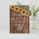 Cartões de Recepção de Casamento Rústico de Madeira e Sunflower com Burlap Country Farmhouse Chic com fonte de pincel moderno! ~Verifique minha loja para ver o conjunto completo de casamento para este design!