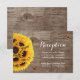 Cartões de Recepção de Casamento em Madeira de Celeiro Rústico com Girassóis e Joaninhas.