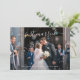 Convite de Recepção de Casamento / Casamento Secreto Moderno com um design simples com "casados" em uma caligrafia elegante manuscrita com floreios juntamente com seus nomes e data de casamento sobre sua foto favorita. O verso tem os detalhes da sua recepção. Este Convite de Recepção é perfeito para um casal que já é casado e deseja celebrar com familiares e amigos após terem se casado em segredo.