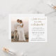 Convite de recepção de casamento com a frase "vale a espera para finalmente celebrar!" em um script divertido em dourado. Personalize com sua foto.