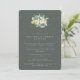 Um elegante convite à recepção de casamento verde de cinzas escura para recepções que acontecem algum tempo depois da cerimônia ou após um elopemento. Apresentando um buquê/poste de groselhas de neve pintadas manualmente e eucalipto e uma dispersão de pontos. Todo o texto é totalmente editável. Esta placa está disponível com uma foto na parte traseira, com designs botânicos do alternativo e em cores diferentes. Consulte a Coleção na minha loja para ver todas as opções e itens de coordenação.