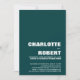 Convide seus amigos e entes queridos com este verde na moda minimalista com um convite para recepções de casamento de texto branco com uma foto dos recém-casados nas costas para compartilhar sua alegria no seu casamento recente. Para obter melhores resultados, ajuste a imagem escolhida para o verso do recorte de convite para uma proporção de 5 x 7.