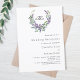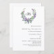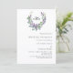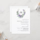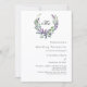 Um fundo branco decorado com uma flor de lavanda e uma coroa verde de eucalipto, crista. Personalize e seu monograma, nomes e detalhes.