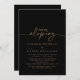 Este cartão de recepção clássico de ouro negro é perfeito para um moderno partido de elopemento poste. O design simples e elegante apresenta tipografia de chic e rico em ouro. As placas RSVP são vendidas separadamente.