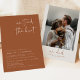 Este convite para recepção de elopementos apresenta uma fonte escura escrita à mão e um design moderno e minimalista, combinado com uma combinação de cor verde e cor bege-alaranjada queimada. É perfeito para qualquer casal contemporâneo, industrial ou mínimo. Edite o texto *maioria* e todas as cores para atender às suas necessidades e adicione uma foto no verso para um toque pessoal.