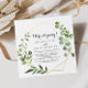 Este cartão de recepção de elopementos verdes tropicais de ouro geométrico é perfeito para um simples partido de elopeamento poste. A design apresenta lindas folhas verdes pintadas à mão, enfeitando um quadro geométrico dourado. As placas RSVP são vendidas separadamente.