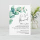 Convide amigos e entes queridos para a recepção após o casamento com este convite de folhas de eucalipto em aquarela para celebrar seu casamento recente, que apresenta uma imagem do casal feliz no verso.
