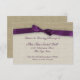 A aparência de burlap com uma fita bonito de satin é impressa neste cartão de recepção elegante de país para corresponder aos nossos convites. Todas as partes deste convite são impressas. Não há nenhuma fita ou arromba real conectada.