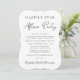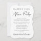 Convite de casamento ou anúncio de fuga ou pequeno casamento elegante e sofisticado e recepção ou festa de celebração. A frente apresenta "Festa Feliz para Sempre" em uma mistura de tipografia simples e um script moderno e elegante, e você pode personalizar seu anúncio e convite e adicionar seus nomes em um script semelhante a uma assinatura. O verso apresenta sua foto de casamento favorita, primeiros nomes e data de casamento.