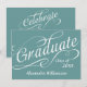 Plano de fundo azul com texto branco suave com "formando" e um ano personalizado, excelente para o formando anunciar a grande conquista. Celebre no verso com texto de evento de recepção personalizado para seus convidados. Todos os Designs Copyright © www.CustomInvitesOnline.com