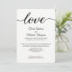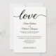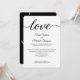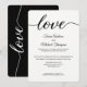 Simples, Moderno, tipografia preta e branca "Amor" caligrafia. Personalize este convite de recepção de casamento com os nomes do noivo e da noiva e todos os detalhes sobre o casamento e recepção. Este layout é chique e elegante, fácil de customizar.
