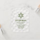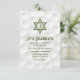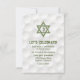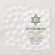 Convite de festa de recepção de Bar Mitzvah com tema de golfe com fundo de bolas de golfe e sotaques de grama verde. Este cartão de convite de festa de recepção de Bar Mitzvah com tema de golfe é elegante e moderno. Este cartão de recepção de Bar Mitzvah com tema de golfe apresenta um fundo sutil de bolas de golfe com uma Estrela de Davi judaica e ícone de golfe. As cores neste design elegante de Bar Mitzvah com tema de golfe são branco e verde. O nome do seu filho está em uma fonte em negrito.