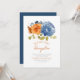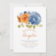 Convite para Recepção de Casamentos outono Florais de Laranja Azul e Queimado marinho