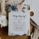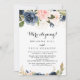 Este cartão de recepção de elopemento de caligrafia floral de inverno é perfeito para um moderno partido de elopemento poste. O design apresenta belas flores azuis escuras, azuis, marinhos, rosa, pinceladas, douradas e folhagem verde pintadas manualmente, amontoadas em buquês elegantes. As placas RSVP são vendidas separadamente.