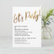 Convide seus convidados para a celebração do seu casamento com a ajuda destes simples cartões de convite. Para o cabeçalho, usei uma fonte casual, moderna e escrita à mão para criar uma camada gráfica de tipografia lendo "Partido do Vamos!". Esta imagem foi embelezada com um efeito suave de folha de ouro para um resultado festivo. Preencha os vazios modelo com seus detalhes para personalizar o design. Todas as camadas foram deixadas destravadas para que você também possa clicar para personalizar e reposicionar o texto ou até mesmo alterar os tamanhos ou fontes. Altere o plano de fundo para qualquer cor que você preferir. Alternativamente, você pode optar por adicionar uma imagem ao verso. Por favor, não hesite em contactar para obter assistência em matéria de personalização. 105 //