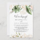 Este cartão de recepção de elopemento floral foliar dourado tropical é perfeito para uma festa de elopemento poste rústico. O design apresenta ouro de aquarela pintada à mão e folhagem verde tropical com flores escamoteadas elegantes. As placas RSVP são vendidas separadamente.