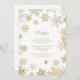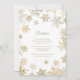 Cartão de recepção de casamento temático de Natal com flocos de neve dourados. Perfeito para casamentos no inverno elegantes e outros eventos sazonais e feriados.