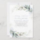 Convites de casamento com caligrafia romântica e verdejante azul poeira para recepção noturna sonhadora