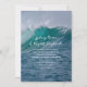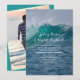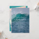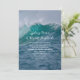 Anúncio de casamento privado com texto de convite para recepção incluído. Ondas quebrando e água verde-mar são o fundo para o texto branco impresso em uma fonte casual. Inclua os nomes do casal e anuncie que agora são "Sr. e Sra.", em seguida, use o modelo de parágrafo para contar a todos a data e local da cerimônia e convide-os para uma festa especial para os recém-casados. A redação pode ser configurada como desejar, com os recém-casados convidando, ou alguém convidando. O verso é uma cor verde-mar sólida. Escolha qualquer tamanho que se adapte à redação e faça o upgrade com papel especial, se preferir.