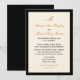 Convites para recepção após o casamento, lindos e baratos, com fundo creme contornado em preto. Seu monograma, nomes e detalhes de RSVP aparecem em cobre, com o restante dos detalhes do convite em preto. Este design é sobre elegância clássica simples a um preço acessível. Copyright bargainsbyhenis
