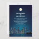 Este é um convite de casamento apenas para recepção para aqueles que terão uma cerimônia privada ou fuga em qualquer cidade urbana. Este convite apresenta uma silhueta da cidade em uma noite estrelada com a lua nascendo acima dos detalhes personalizados do convite para a recepção após o casamento. Perfeito para ter uma pequena cerimônia privada em qualquer cidade e realizar uma recepção em casa, ou se casar em particular e realizar sua recepção na cidade. Disponível com produtos combinando.